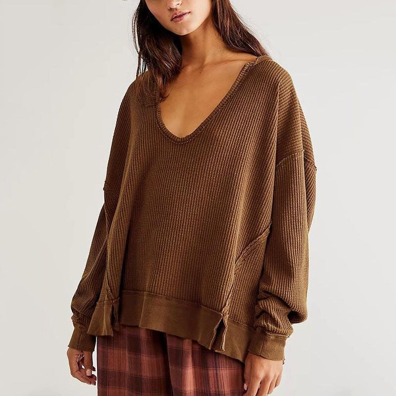Stylish V-Neck Knitted Cotton Sweatshirt for Women
