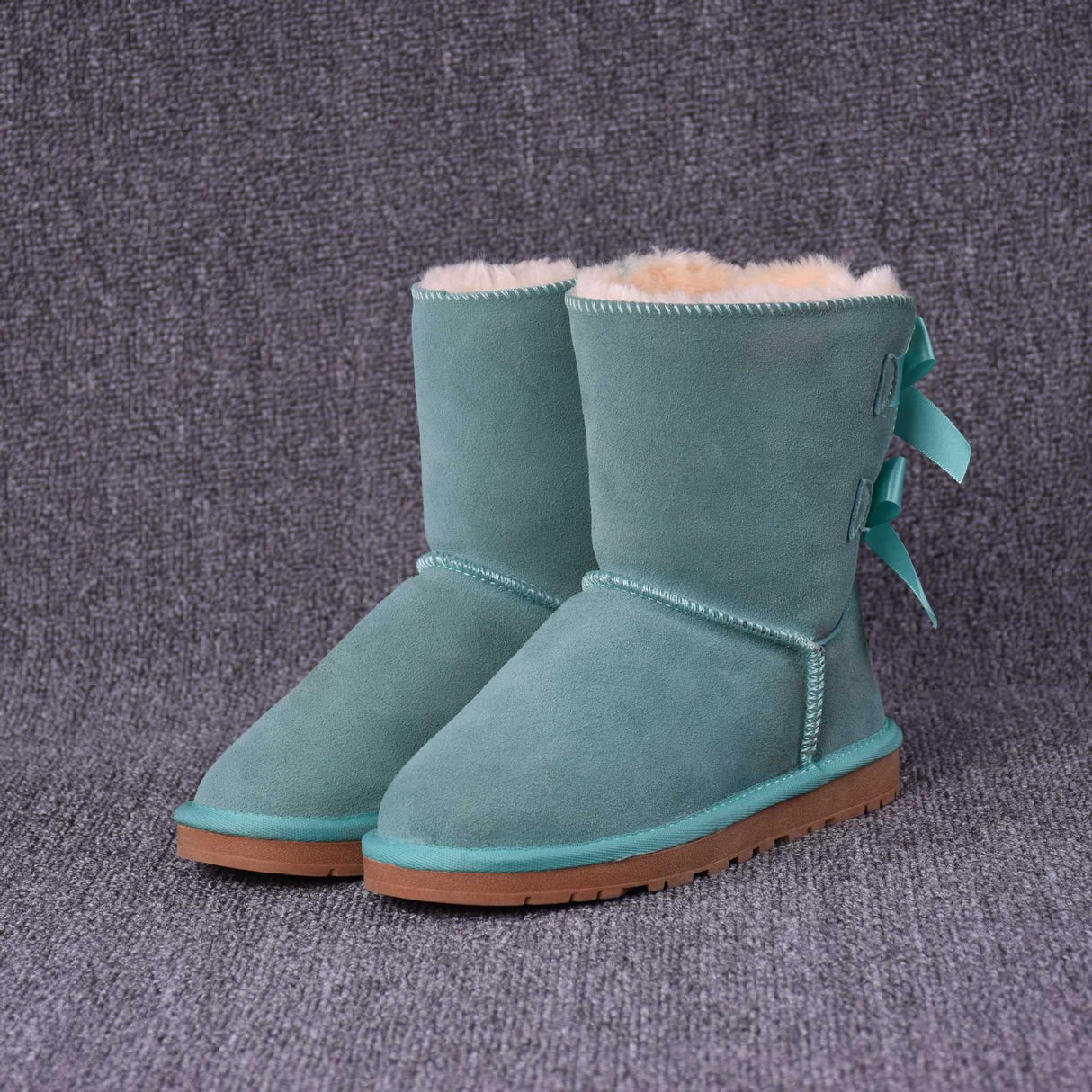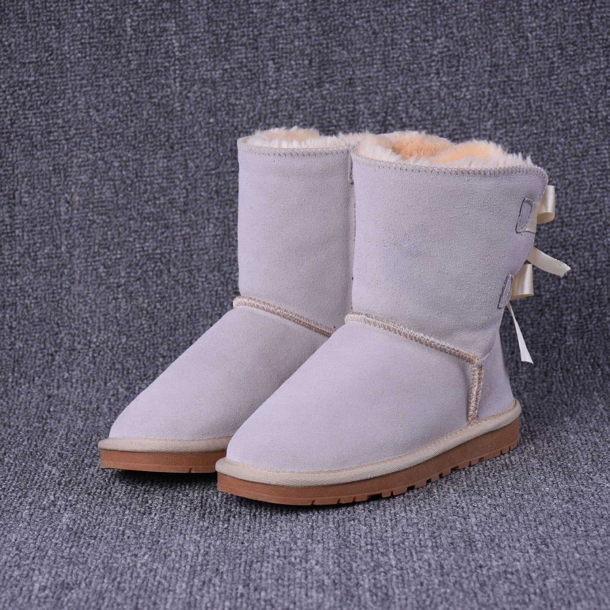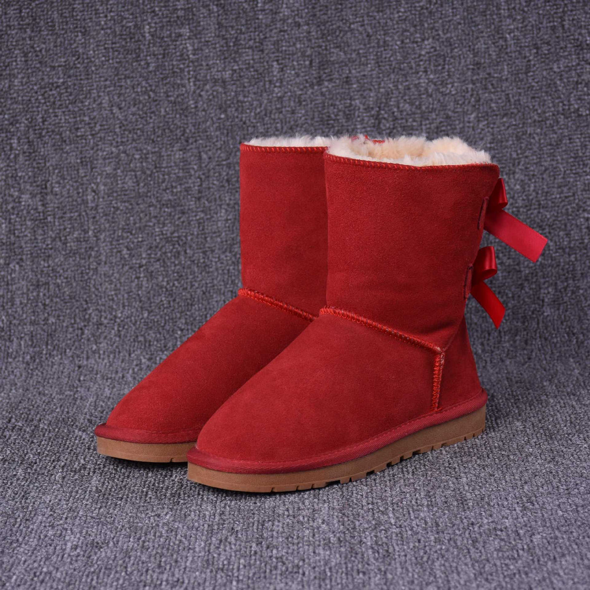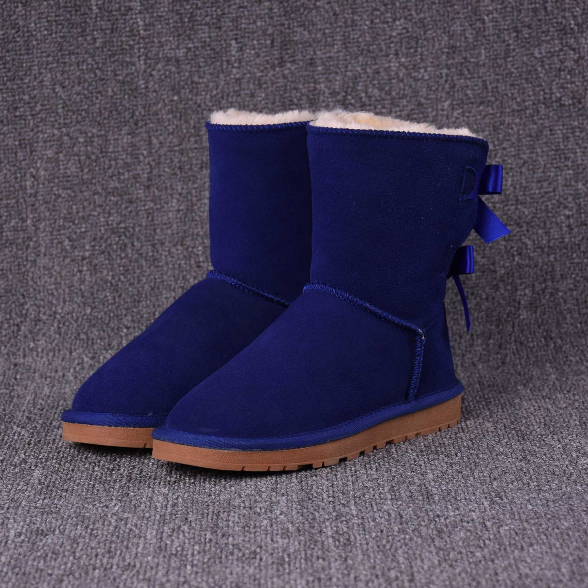 Women's Solid Color Bow Mid-tube Snow Boots