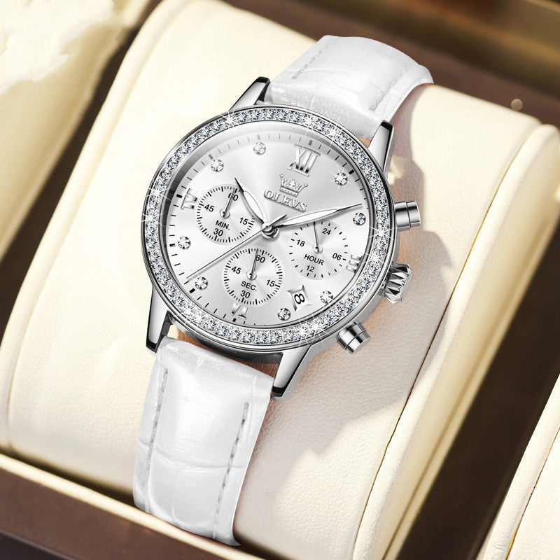Women's Quartz Watch With Diamond Inlaid Multi-function Timing