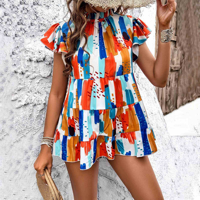 Trendy Women's Geometric Printed Top with Ruffled Sleeves