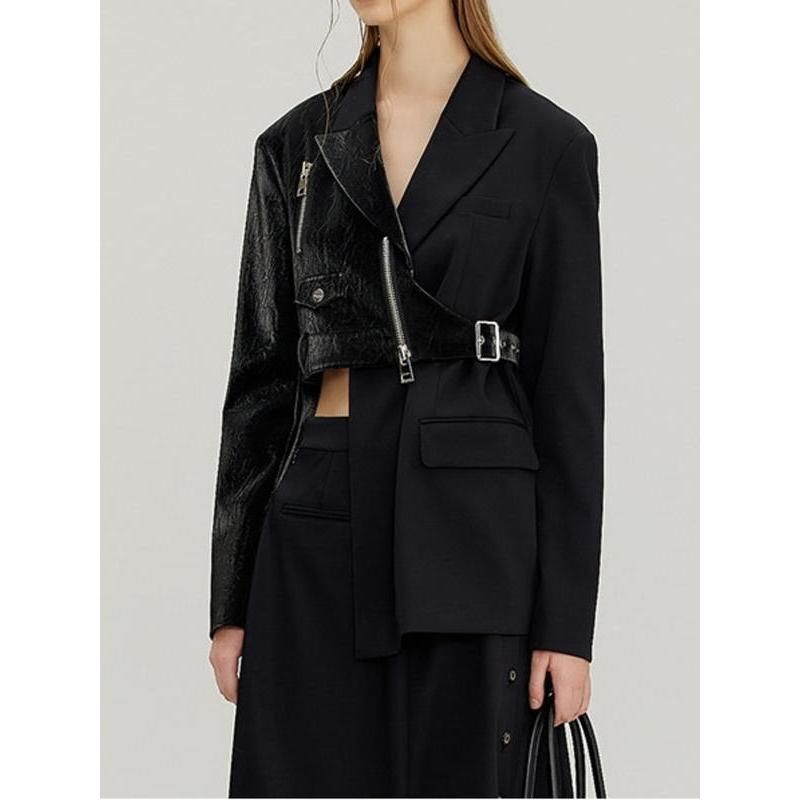 • Unique Design: The irregular cut and PU leather splicing set this blazer apart from the usual, catering to the street trendsetters.