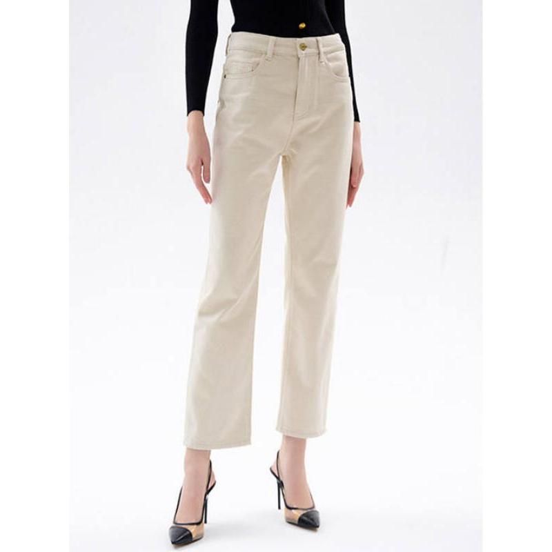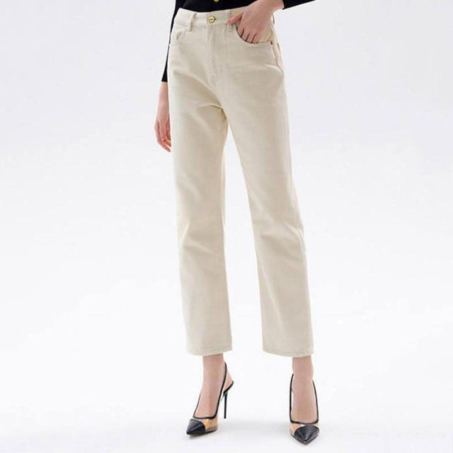 Our jeans are designed with a high waist and a straight fit, providing both comfort and a flattering silhouette. Made from high-quality cotton denim, they ensure durability and ease of movement. The non-stretch fabric maintains its shape, giving you a chic look all day long. The ankle-length cut makes these jeans versatile for different footwear options, from boots to flats.