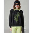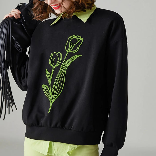Fashionable Women's Floral Embroidered Loose Fit Pullover Hoodie