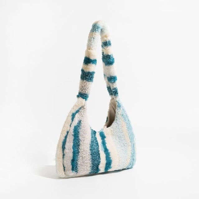 Trendy Striped Faux Fur Underarm Hobo Bag - Blue stripes is backordered and will ship as soon as it is back in stock.