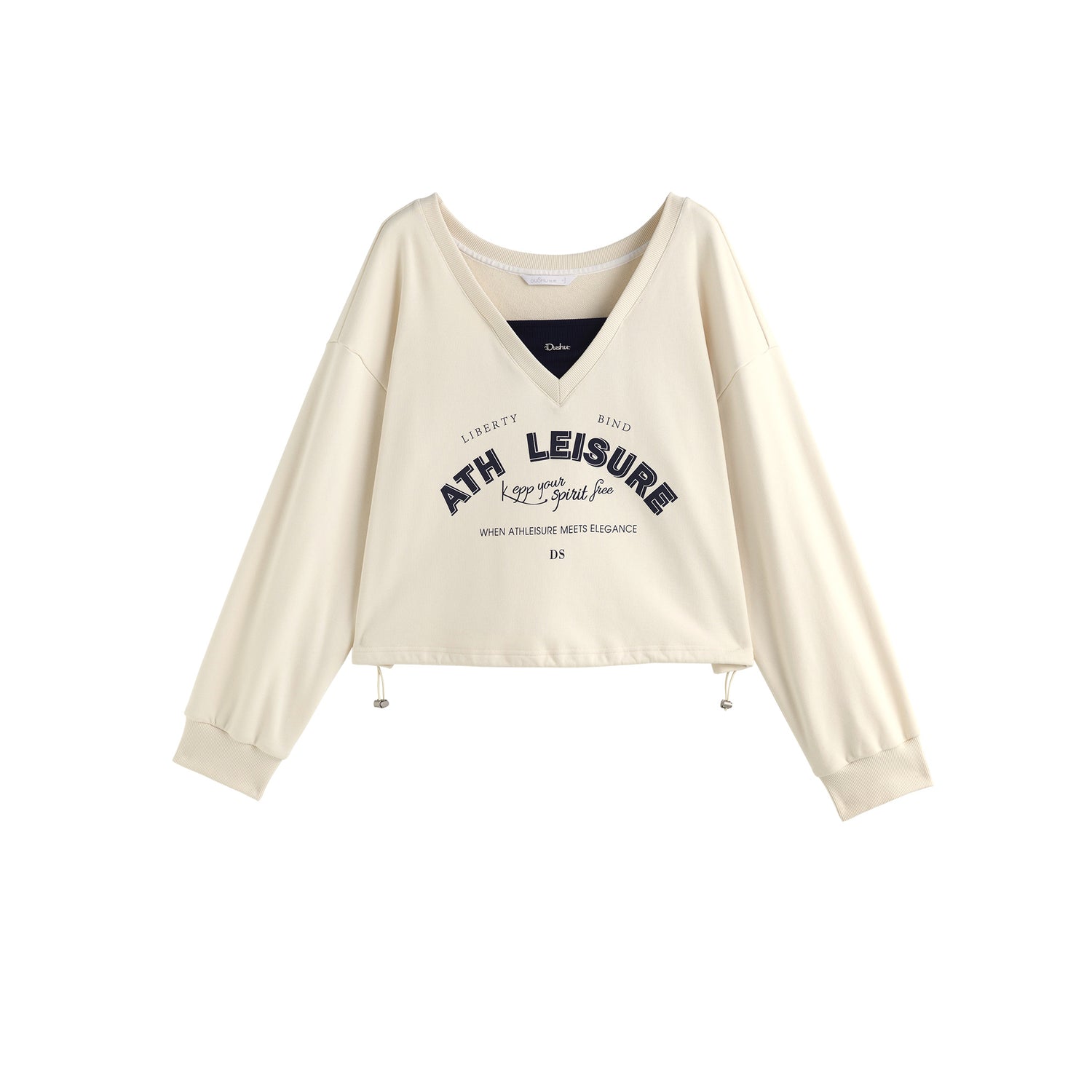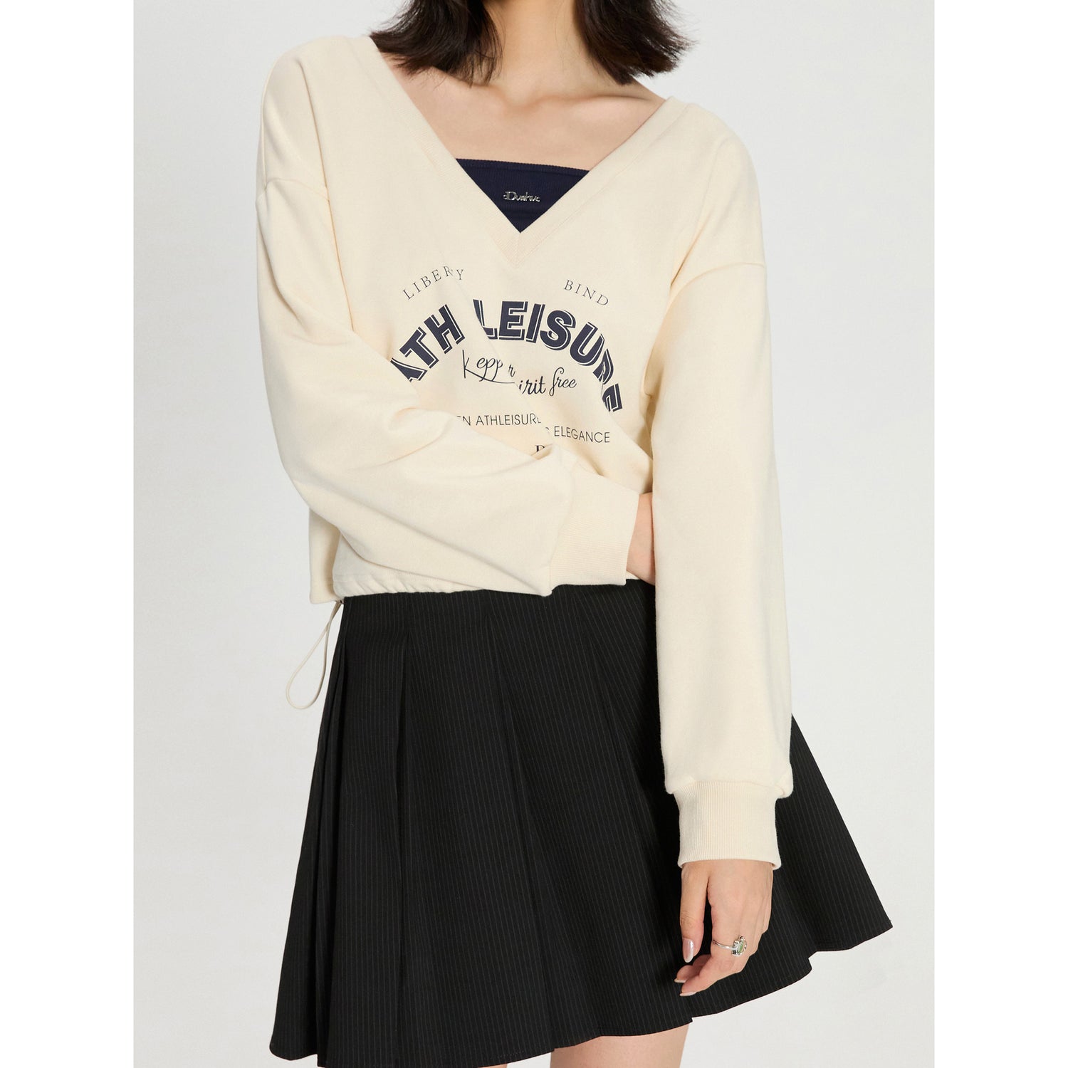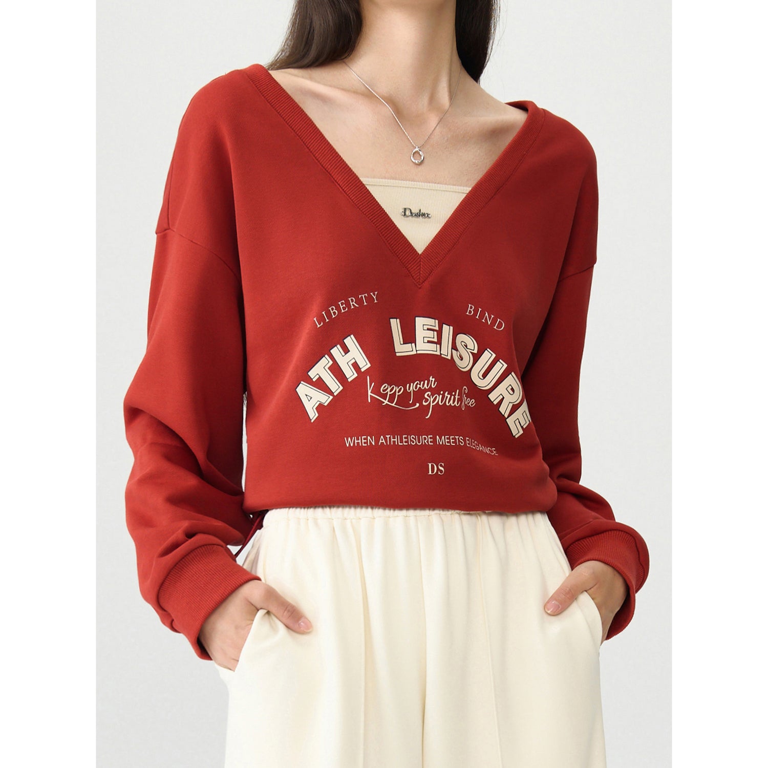 Women’s V-Neck Patchwork Casual Sweatshirt