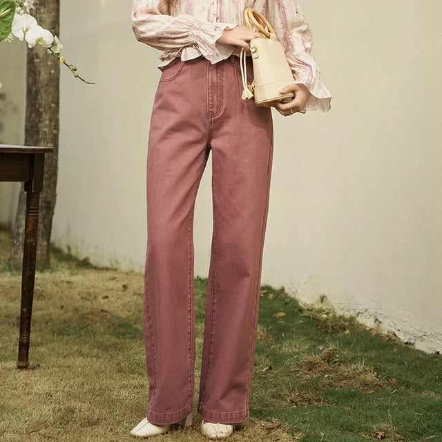 High Waist Wide-Leg Cotton Jeans for Women