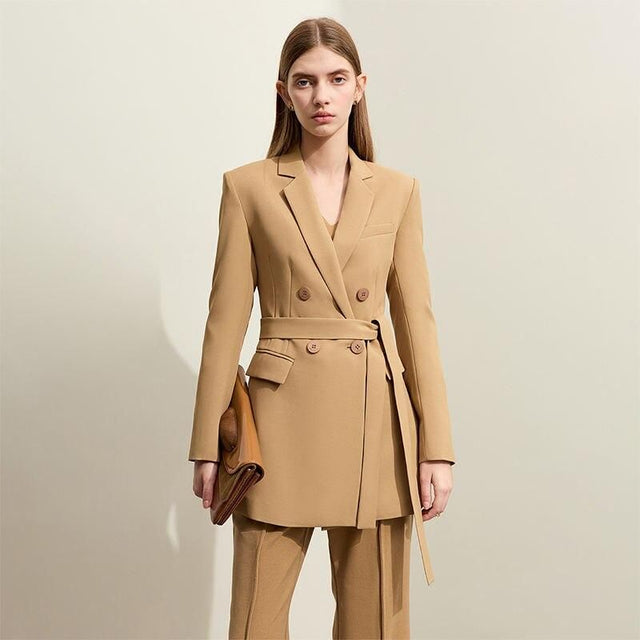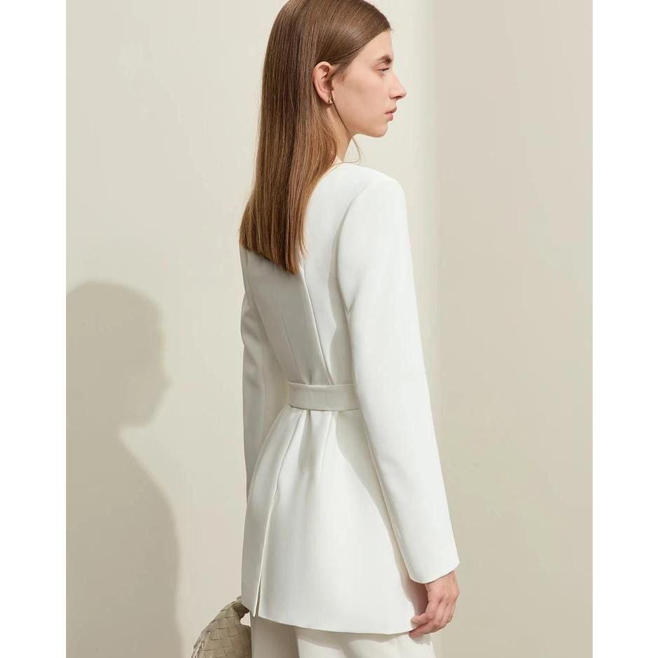 What sets our blazers apart is the attention to detail and the commitment to quality. From the meticulously chosen fabric to the contemporary slim fit design, every aspect is crafted to enhance your wardrobe. The inclusion of a belt not only serves a functional purpose but also adds a fashionable edge, making it a versatile and essential piece in any woman's wardrobe.