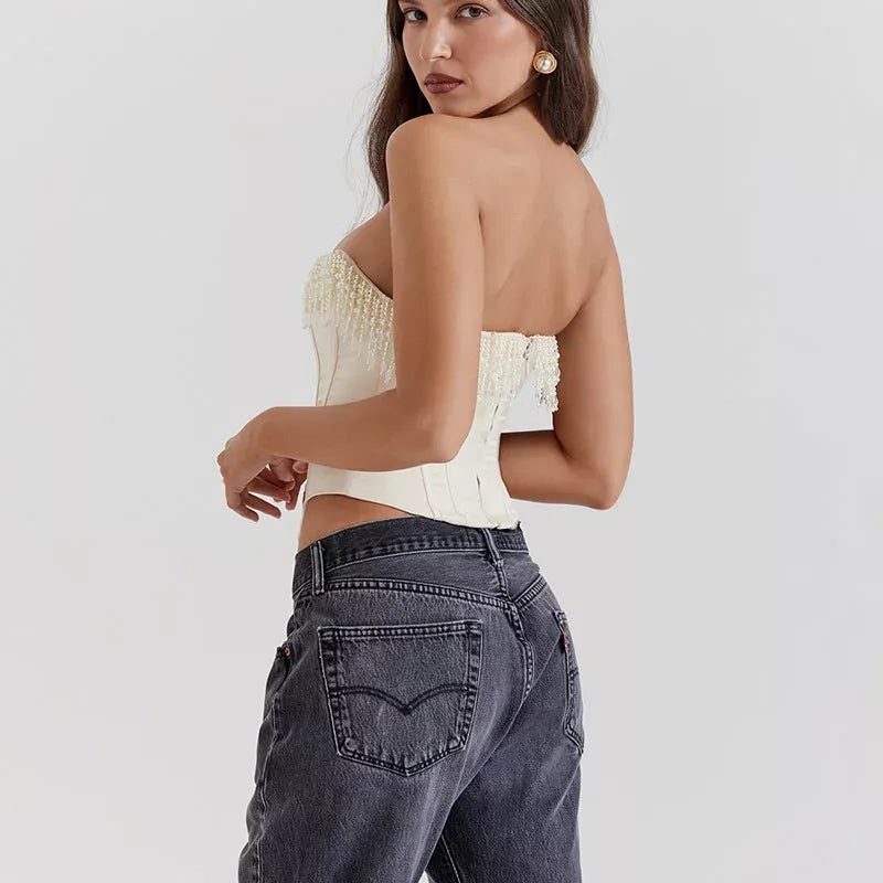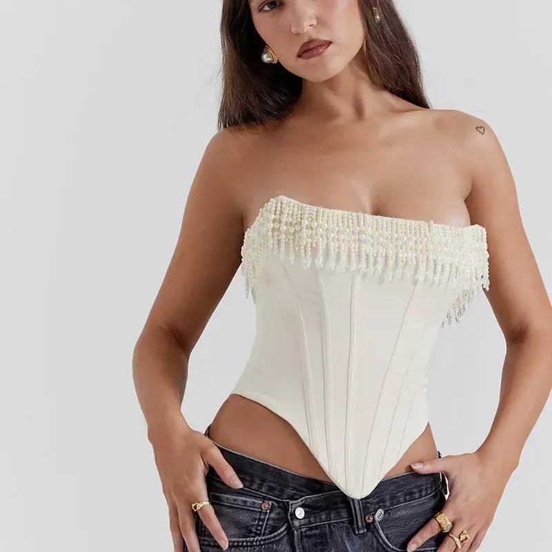 Our Chic Strapless Beaded Tassel Corset Top is not just clothing; it's a fashion statement. With its modern high-street style blended with classic elements like beading and tassels, this top is a must-have for those who appreciate elegance and unique design. It's the perfect combination of style, comfort, and versatility, making it an essential addition to your fashion collection.