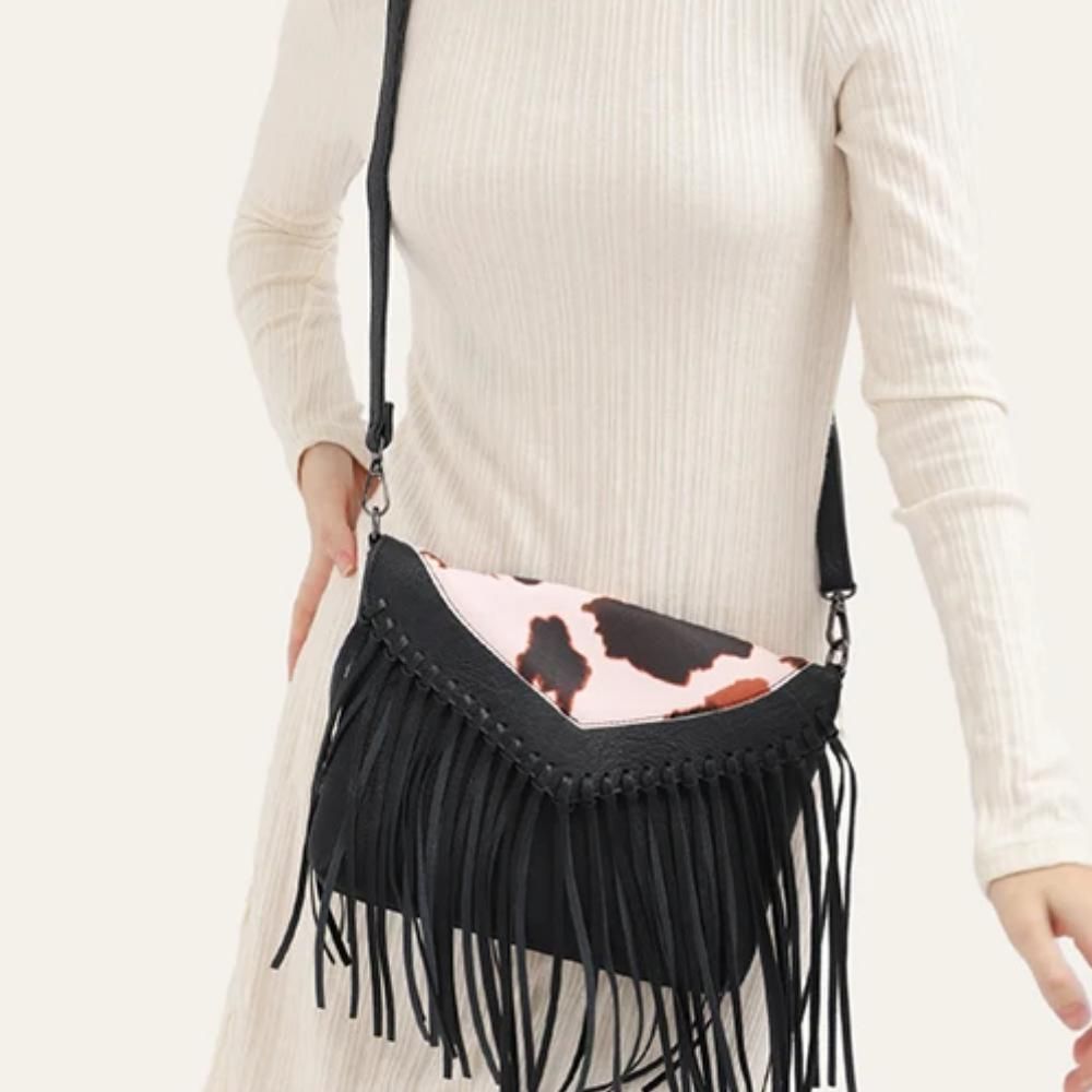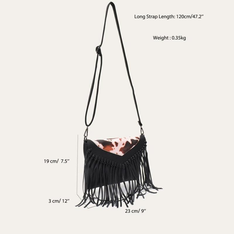 Bohemian Animal Print Crossbody Bag with Tassel Fringe