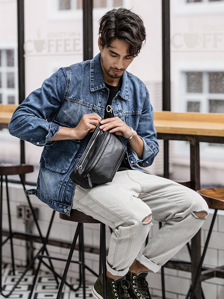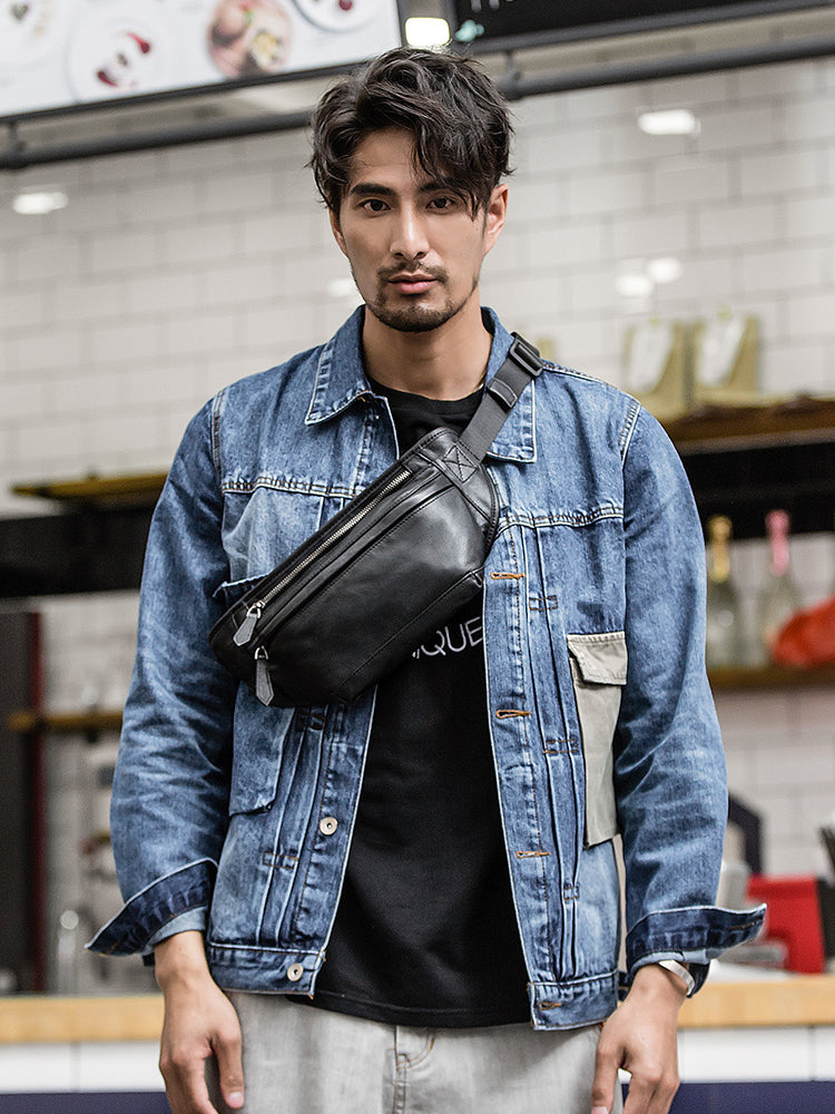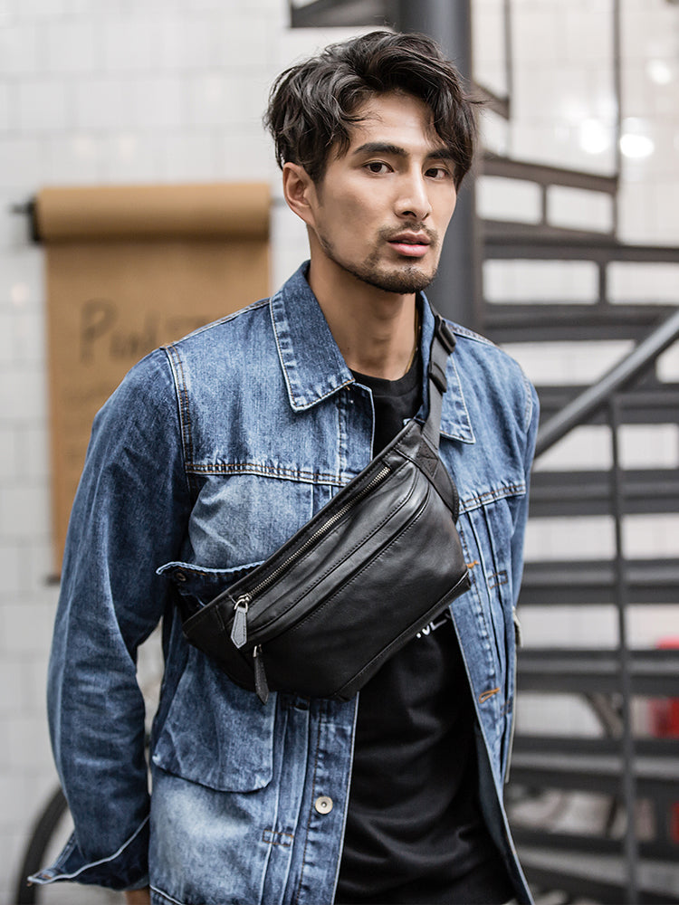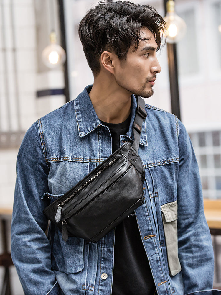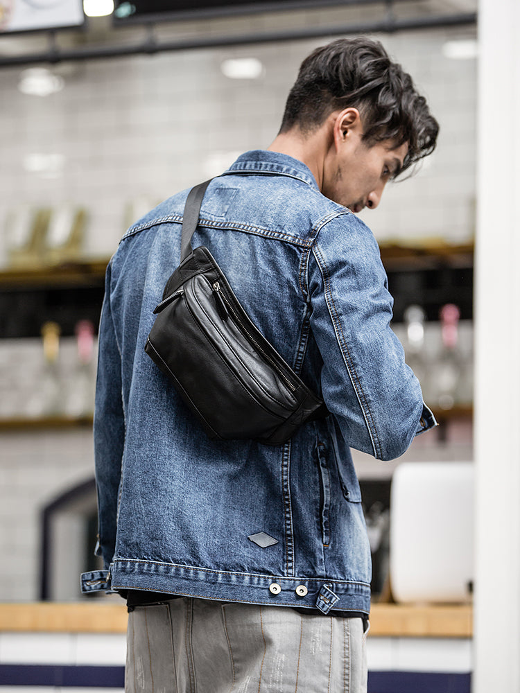 Men's Chest Messenger Bag Genuine Leather Casual Top Layer Cowhide