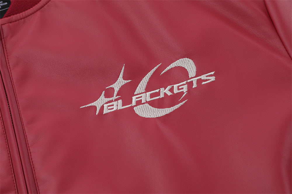 Embroidery Color Stitching Stand-collar PU Leather Coat Men