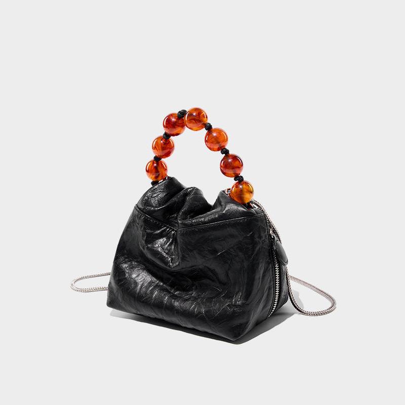 This bag is not just a fashion statement; it's a blend of tradition and modernity, designed to cater to the stylish, busy woman. The use of premium cowhide ensures that each bag is unique, bearing the hallmarks of high-quality leather. The bead detailing is meticulously applied, offering a unique and sophisticated touch that elevates any outfit.