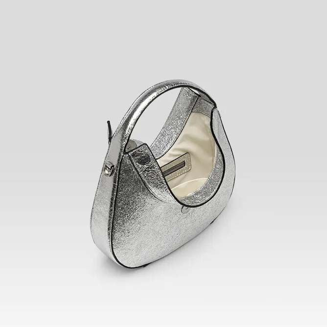 Experience the unmatched quality of high-grade cowhide leather, offering durability and a soft touch. Its unique half-moon shape, adorned with a chic flap pocket, complements any outfit, making it ideal for parties and special occasions. The handbag's solid pattern and fashionable style blend seamlessly with your wardrobe, adding a touch of elegance to your ensemble.
