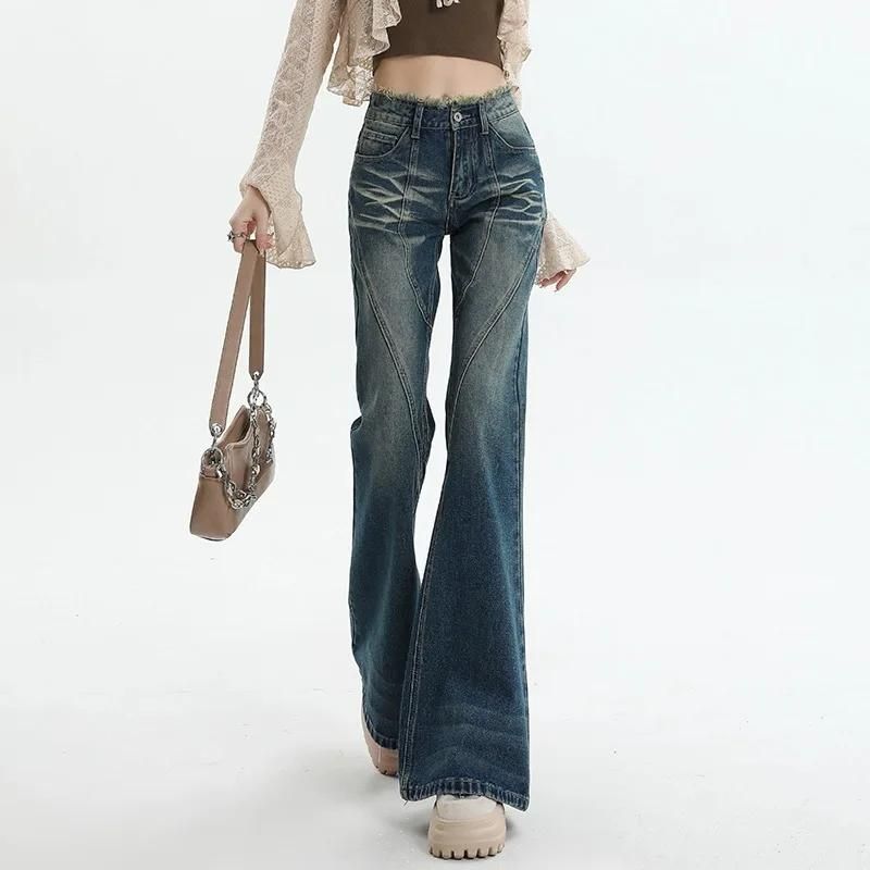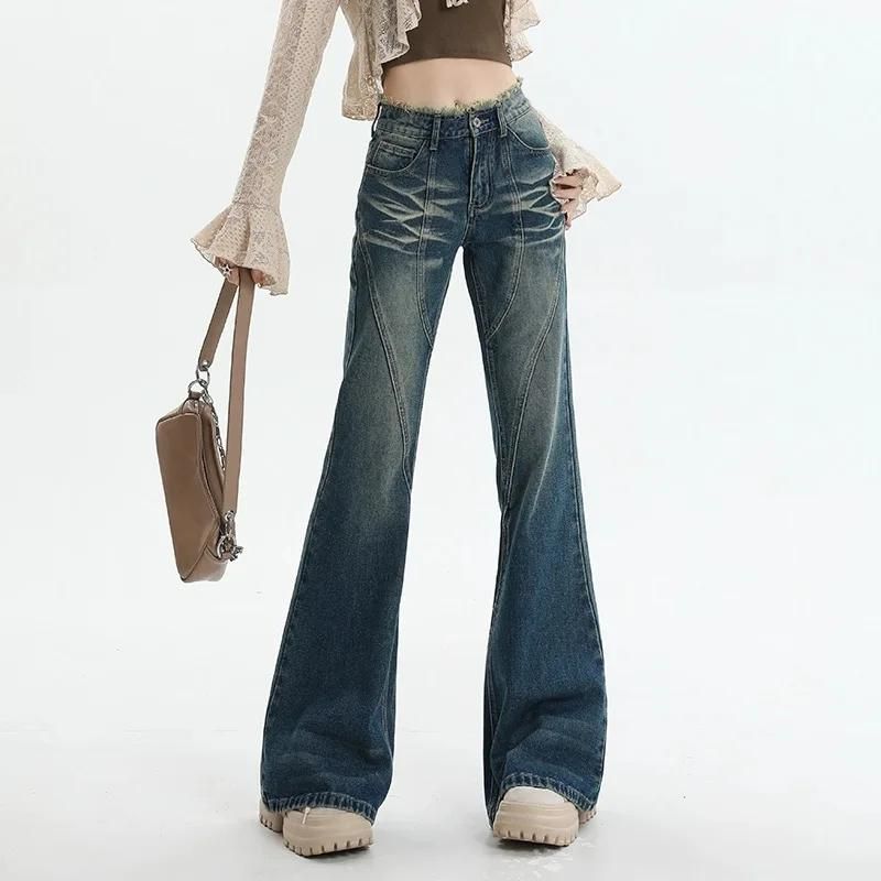 Our jeans boast a range of features that make them unique and desirable. The high-waisted design provides a flattering silhouette, elongating your legs and accentuating your curves. The vintage wash gives them a chic, worn-in look, while the flare style adds a touch of retro glamour. Decorative elements like tassels, buttons, pockets, and fake zippers add both style and functionality, making these pants a practical choice for daily wear.