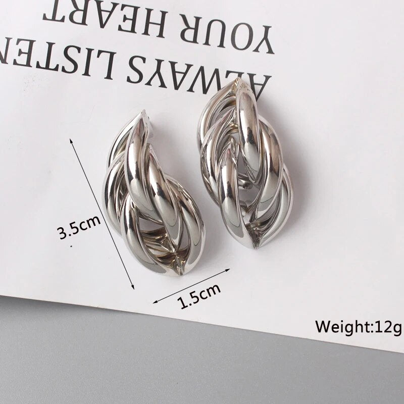 Introducing our Geometric Statement Earrings, a must-have accessory that embodies elegance with a daring twist. Crafted for the modern woman, these hollow twist metal dangle earrings offer a perfect blend of boldness and beauty. Whether you're stepping out for a casual meet-up or dressing up for a night out, these earrings are designed to elevate your style and make a statement.