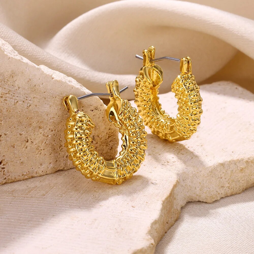 Introducing our latest addition to your jewelry collection - the Gold Color Stainless Steel Hoop Earrings. Perfect for women who love to make a statement, these trendy earrings blend classic elegance with modern flair. Whether you're dressing up for a special occasion or adding a touch of glamour to your everyday look, these earrings are the ideal choice. Crafted from high-quality stainless steel, they promise both style and durability.