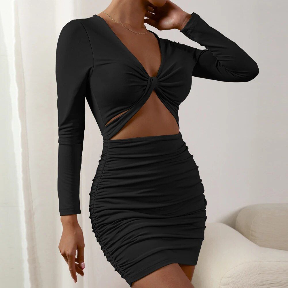 Step into the spotlight with our Fantasy Elegance: Autumn Ruffle Bodycon Mini Dress. This captivating piece is designed to make you stand out at every evening occasion. Crafted with precision and style, this dress is your ticket to a night of glamour and allure.