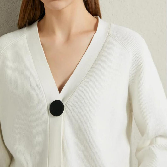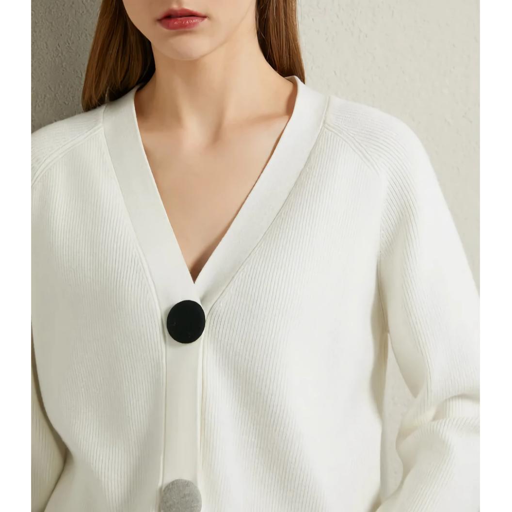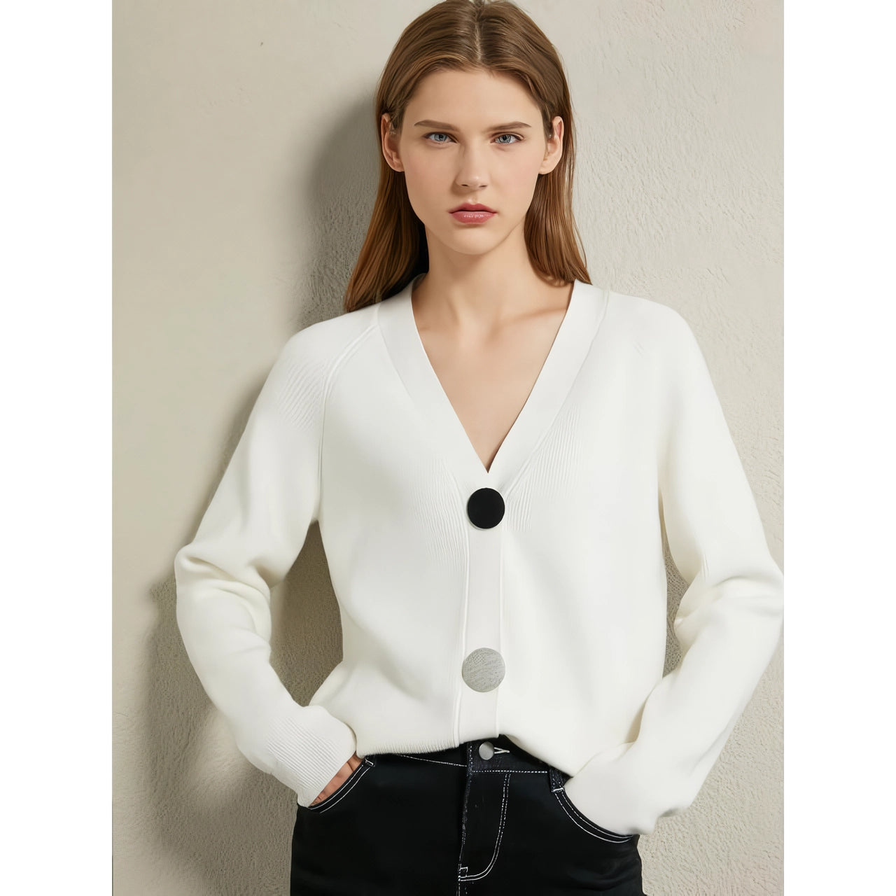 Minimalist Autumn V-Neck Knitted Cardigan with Contrast Buttons