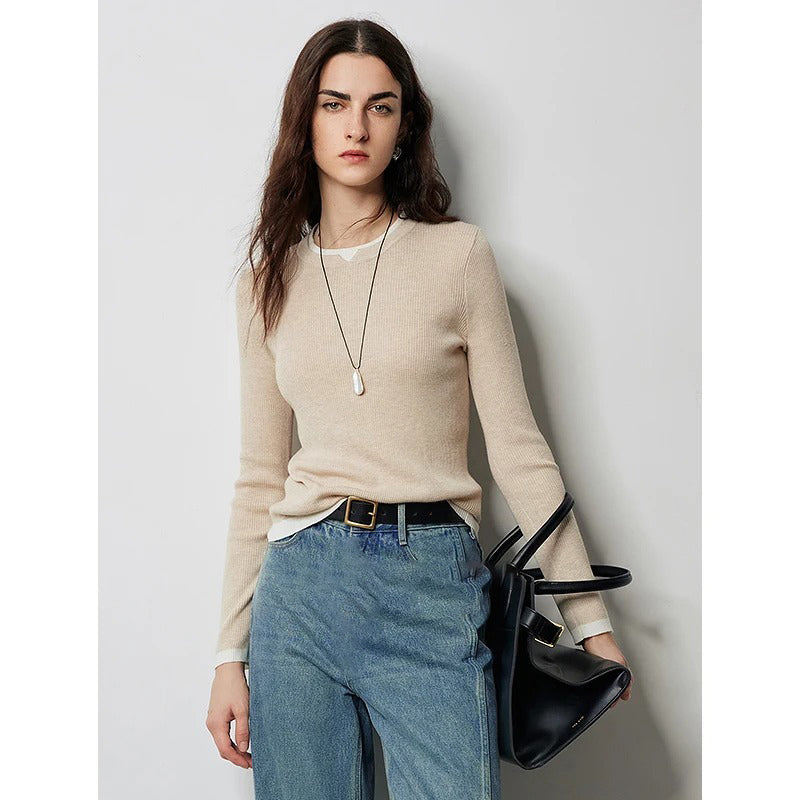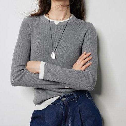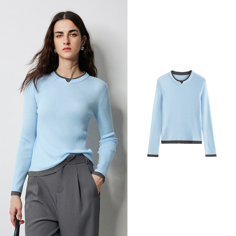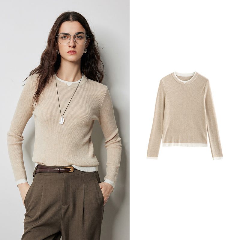 What sets this sweater apart is its unique fake two-piece design, which creates a sophisticated layered effect. The contrasting colors add a touch of visual interest, while the slim fit enhances your natural shape. This combination of style and functionality makes it a standout piece in any wardrobe. Whether you're heading to a business meeting or a casual brunch, this sweater will ensure you look effortlessly elegant and put-together.