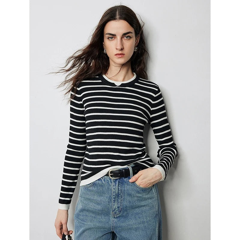 Women’s Autumn Winter Slim Fit Contrasting Color Knitted Sweater