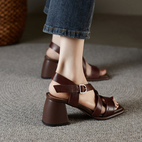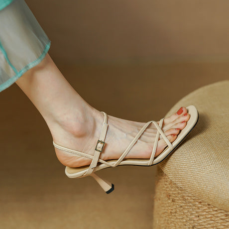 Leather High Heel Open Toe Sandals