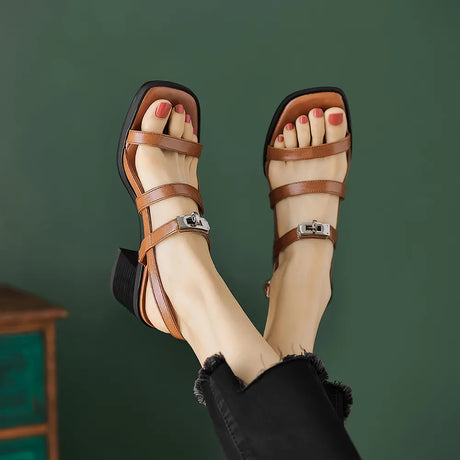 Regular price $ 5,349.00 MXNUnit price /UnavailableChic Open Toe Leather Sandals with Ch...