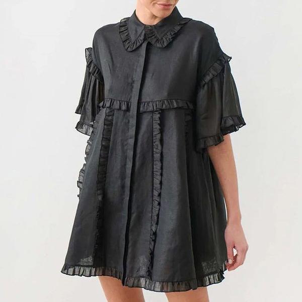 • Ruffle decoration on the neckline and sleeves for a subtle feminine touch