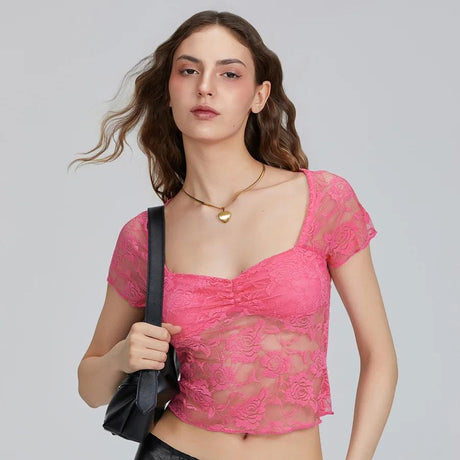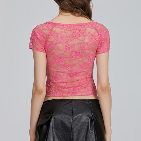 Floral Lace Cap Sleeve Backless Top -...