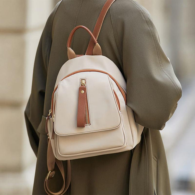 Introducing the Women's Oxford Material Backpack, a perfect companion for schoolgirls, urban commuters, and travel enthusiasts alike. Crafted from high-quality Oxford material combined with cow leather accents, this backpack is designed to be both durable and stylish. With its sleek design and practical features, it’s an ideal choice for those who value both form and function.