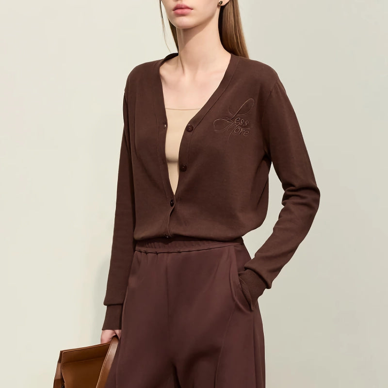 Step into the season with style and sophistication with our Autumn French V-Neck Embroidered Knit Cardigan. This exquisite piece is designed for the discerning office lady who values both comfort and elegance. Made from 100% high-quality cotton, this cardigan offers a slight stretch to ensure a comfortable and flattering fit. The delicate letter embroidery adds a touch of charm, making it perfect for both professional and casual settings.