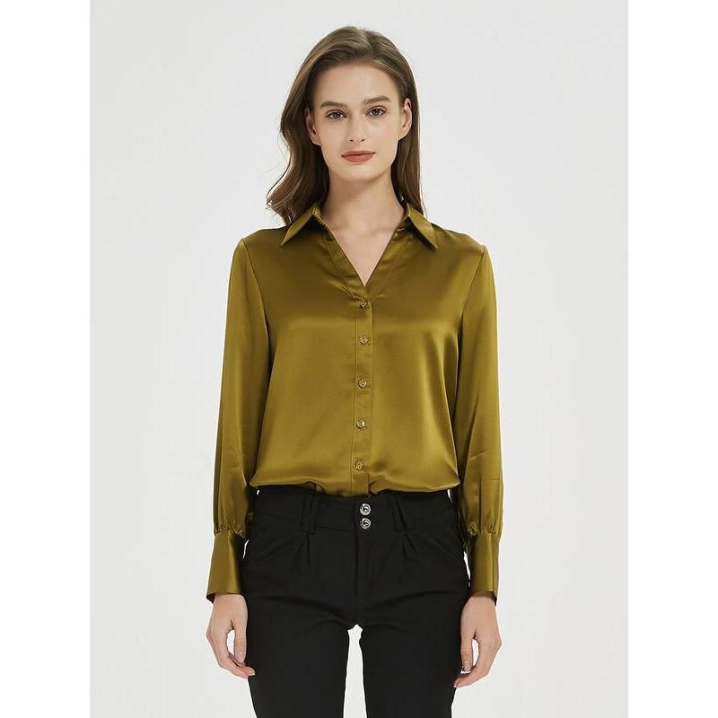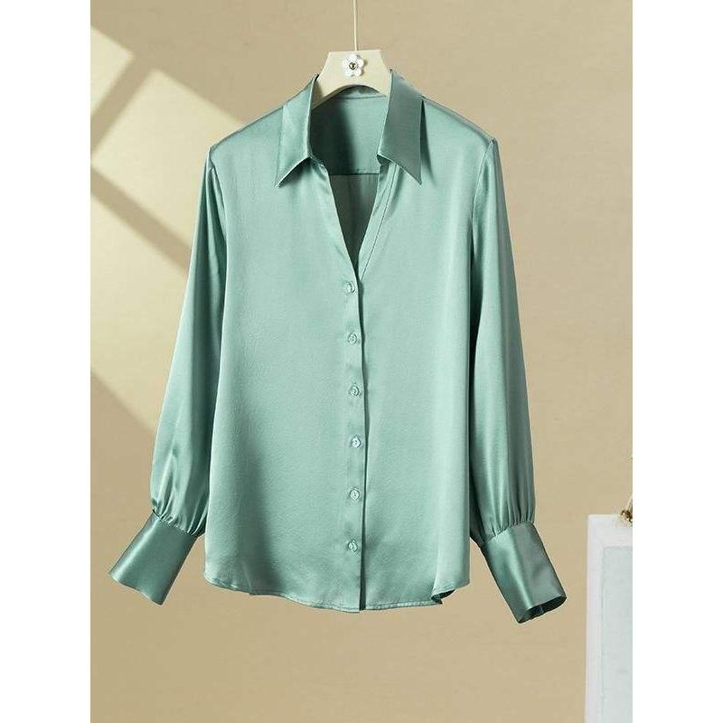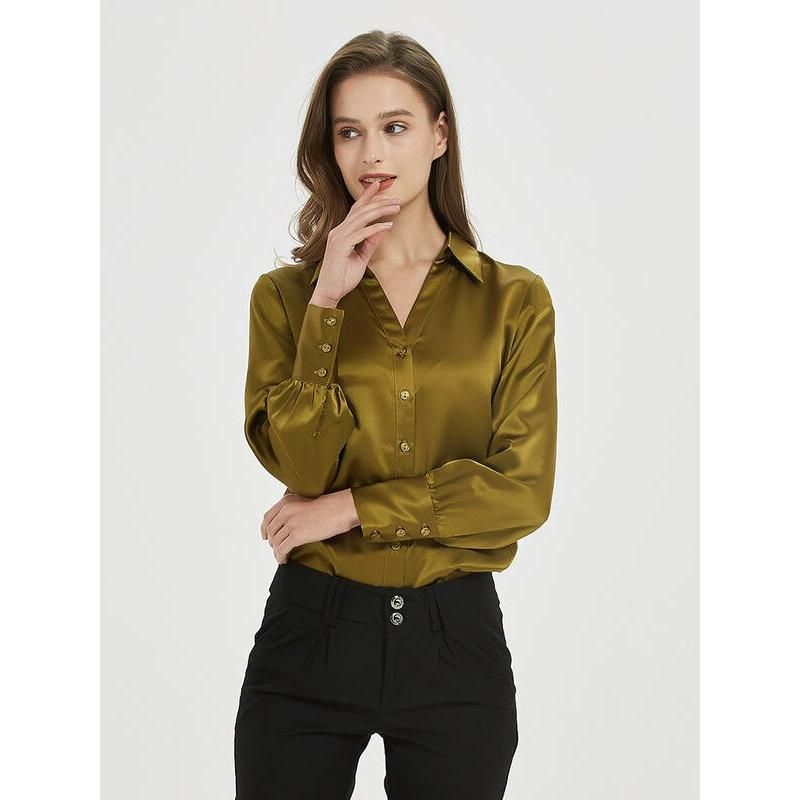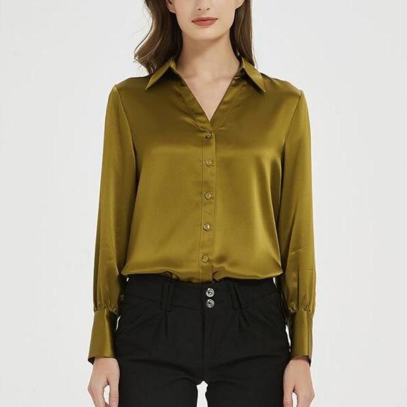 Step into the season of renewal with our Chic 100% Silk V-Neck Blouse, a perfect blend of luxury and practicality. Designed for the modern woman, this blouse embodies sophistication with its sleek, straight fit and turn-down collar. Whether you're heading to the office or a casual day out, this blouse is your go-to for an effortlessly stylish look.