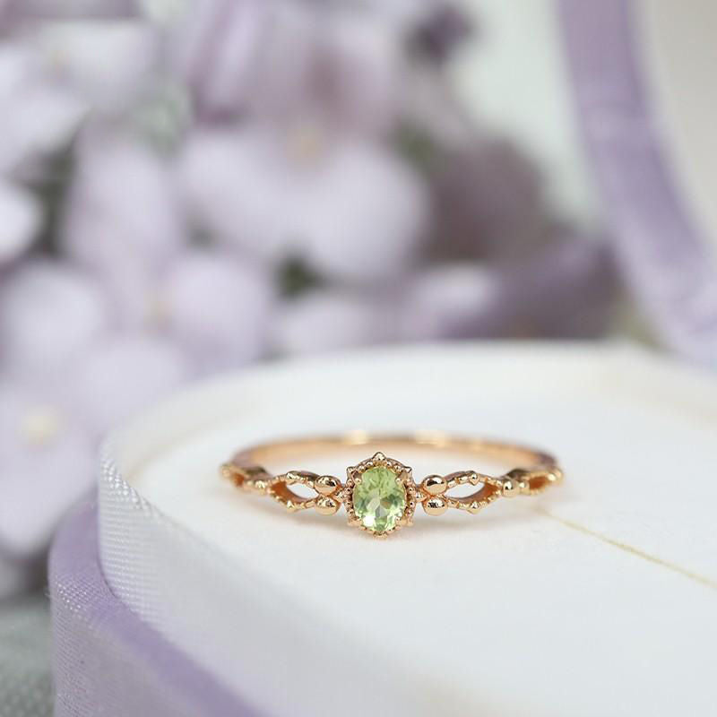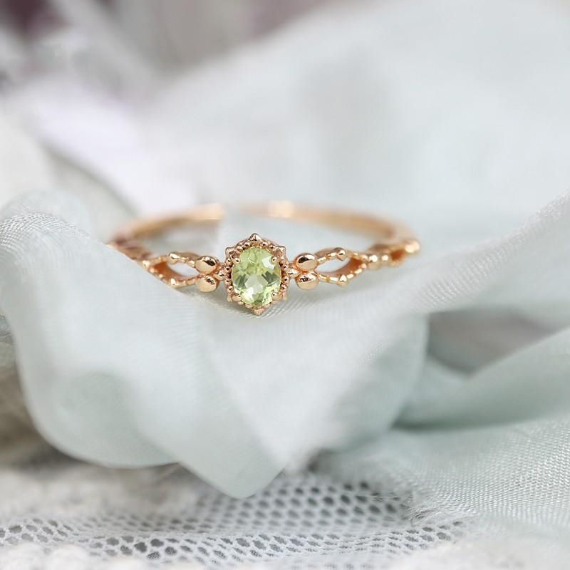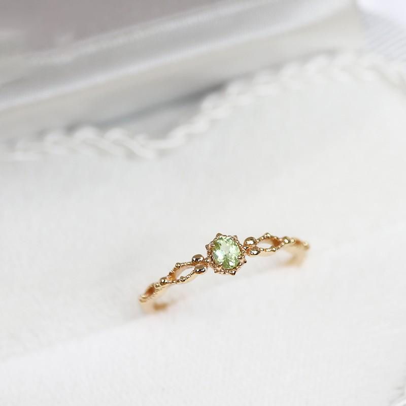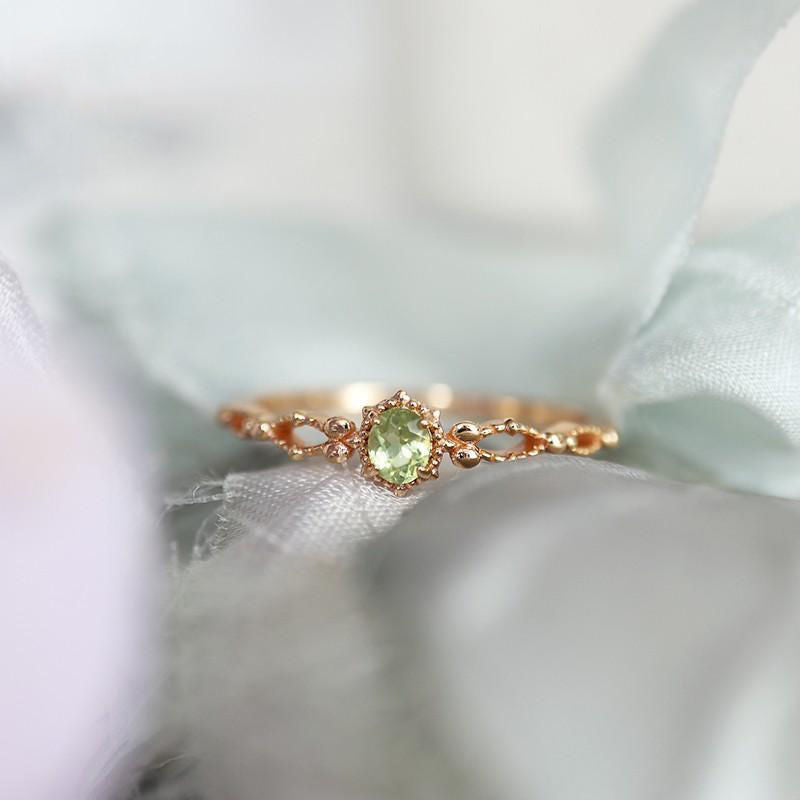 S925 Sterling Silver Japanese Natural Olivine Hollow Zircon Ring