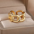 Our Gold Adjustable Chain Ring is designed for the modern woman who appreciates both style and comfort. Made from high-quality stainless steel, this ring offers durability without compromising on elegance. The chain design is a nod to vintage aesthetics, while the adjustable feature allows for a perfect fit, making it a versatile addition to your jewelry collection.