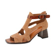 High Heel Gladiator Sandals - Genuine Leather Open Toe Buckle Shoes for Women
