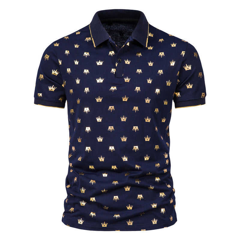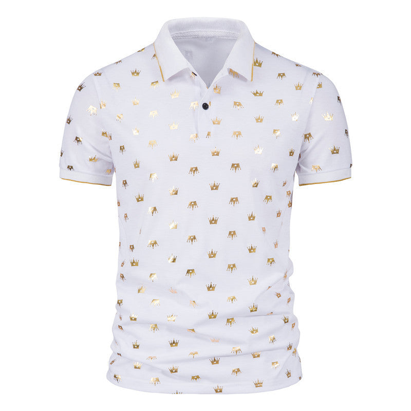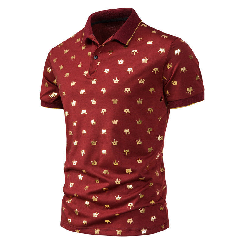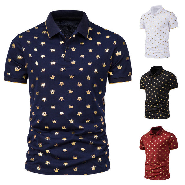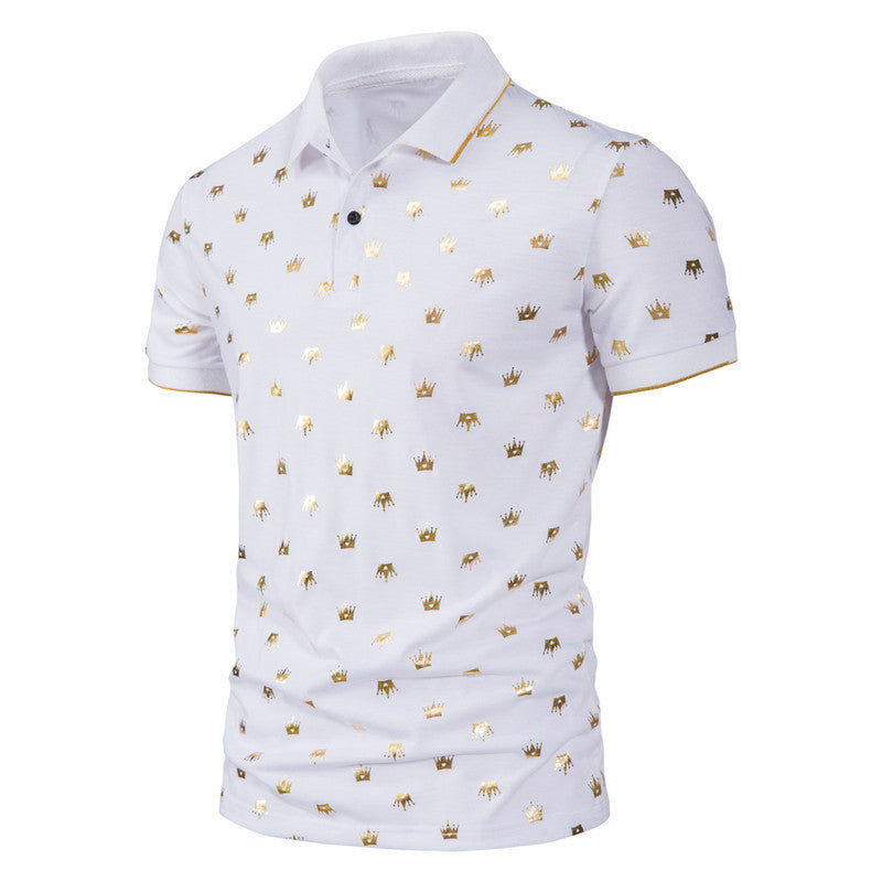 Men's Fashion Crown Bronzing Print Short Sleeve Lapel T-Shirt POLO Shirt