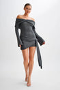 Knitted Off-shoulder Irregular Lace-up Dress Sweater - Gray / S is backordered and will ship as soon as it is back in stock.