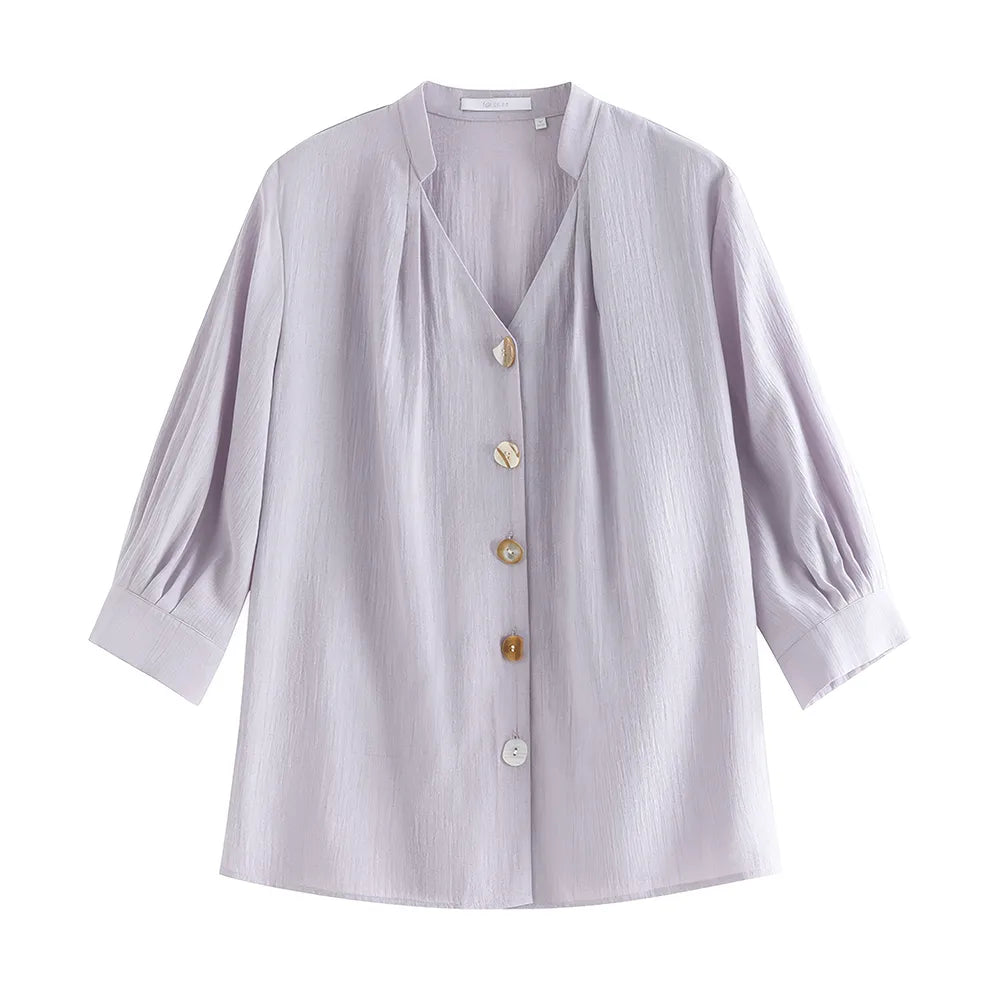 French V-neck Loose Cozy Style Shirt for Women