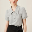 Summer Striped Polo-Neck Tee with Puff Sleeves