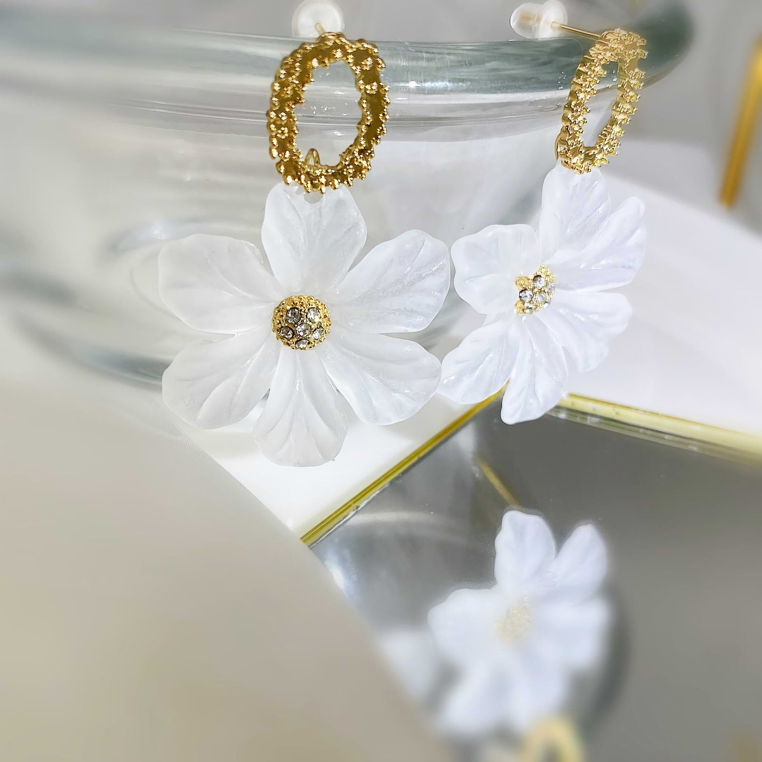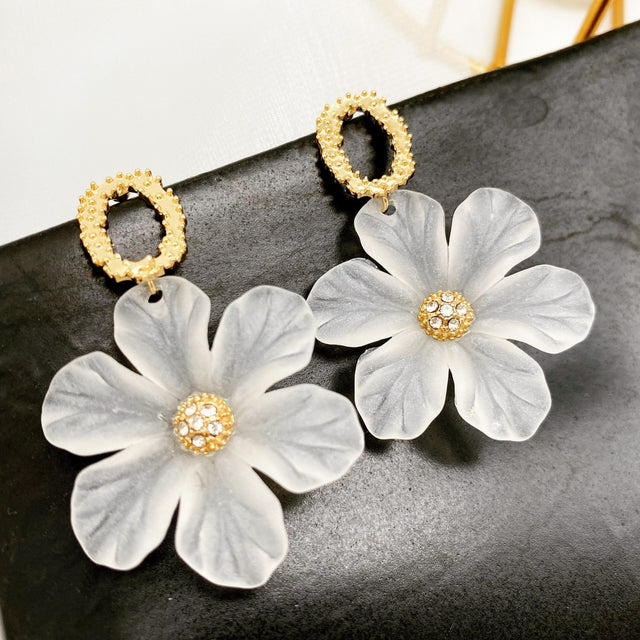 Introducing our latest addition that's sweeping the fashion scene - the Charming Translucent Flower Drop Earrings with Rhinestone. Crafted with precision and a keen eye for detail, these earrings encapsulate the essence of sweet, romantic flair with a hint of Korean elegance. Whether you're dressing up for a beach getaway or adding a touch of charm to your everyday wear, these earrings are your perfect companion.