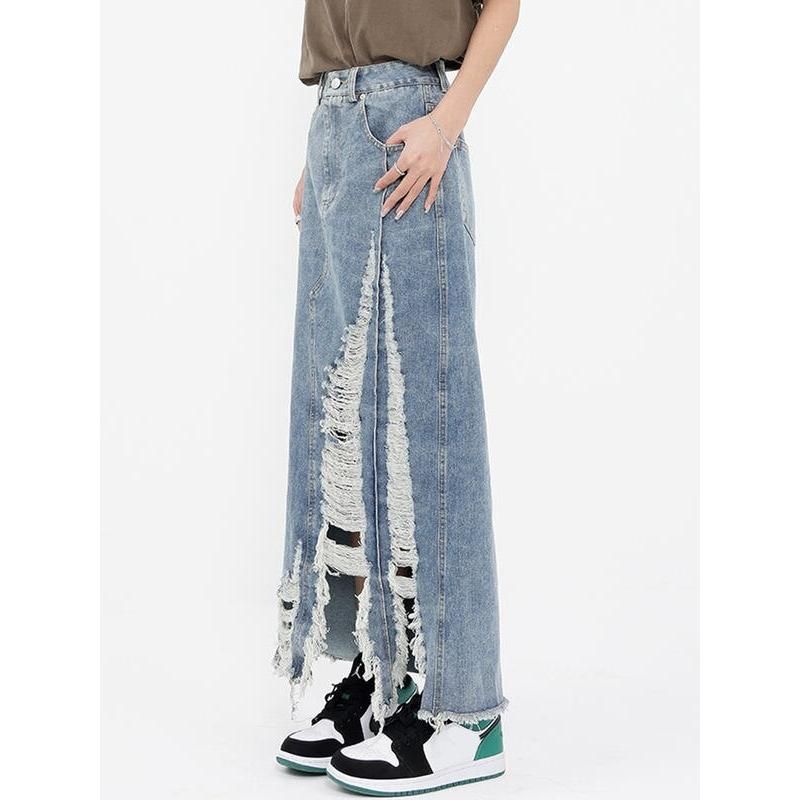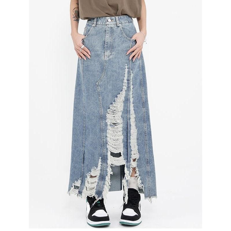 Indulge in the perfect blend of fashion-forward design and casual comfort with our High Waist Denim Holes Irregular Burr Long Casual Half-body Skirt. This statement piece is not just a skirt; it's a fashion tide, a symbol of confidence and flair.Unleash Your Style with Confidence