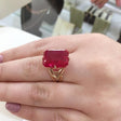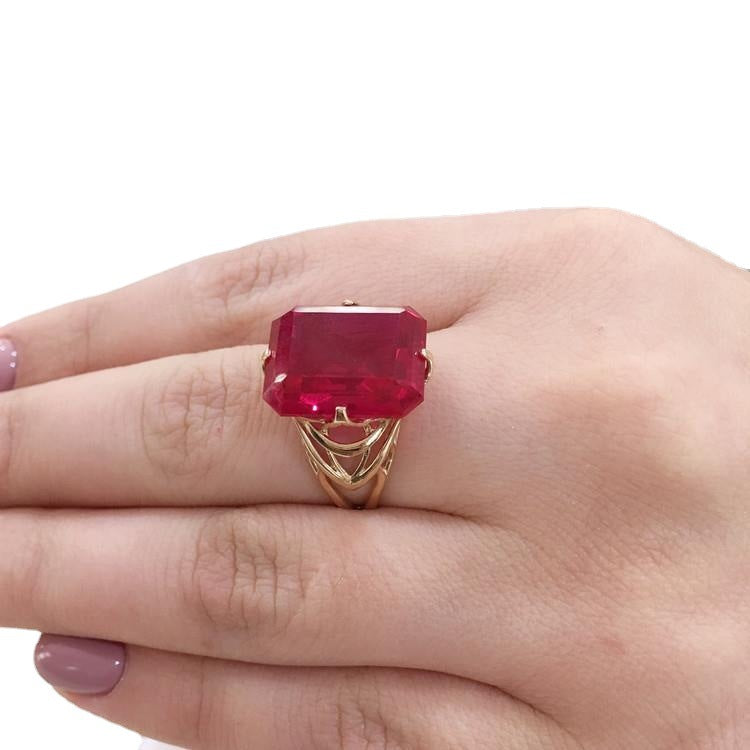 Rose Gold Inlaid Square RedstoneFashion Ornament Index Finger Ring Women