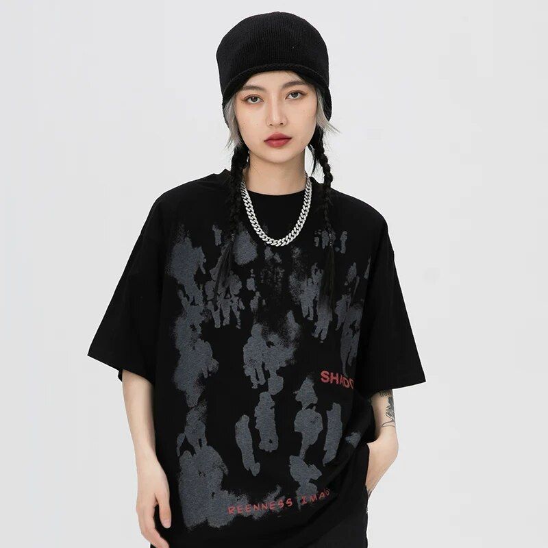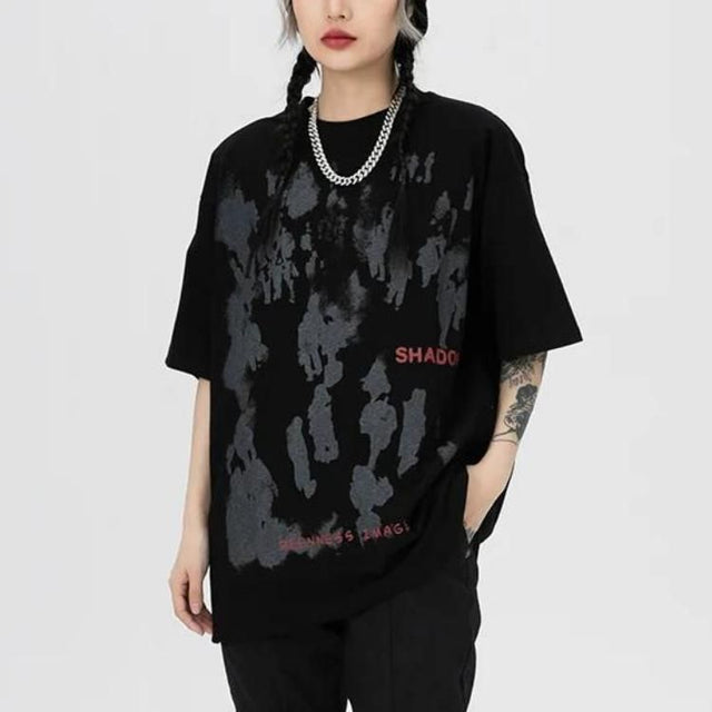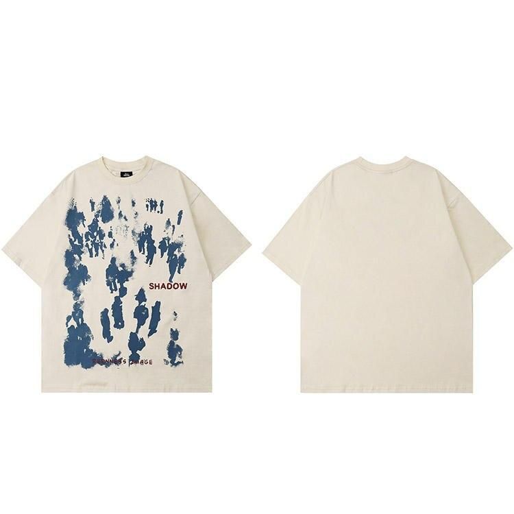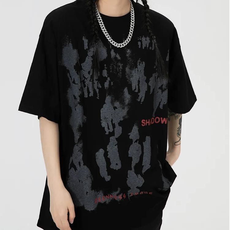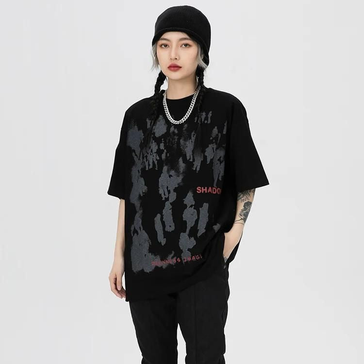 What sets this T-shirt apart is its unique blend of street-inspired style and practical comfort. The high-quality cotton material feels soft against the skin, ensuring comfort all day long. The shadow letter print adds an edge to your look, making it more than just a basic tee – it's a statement.