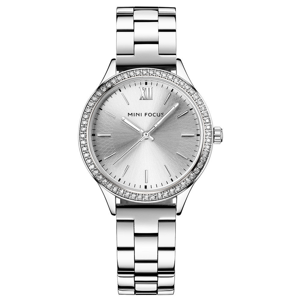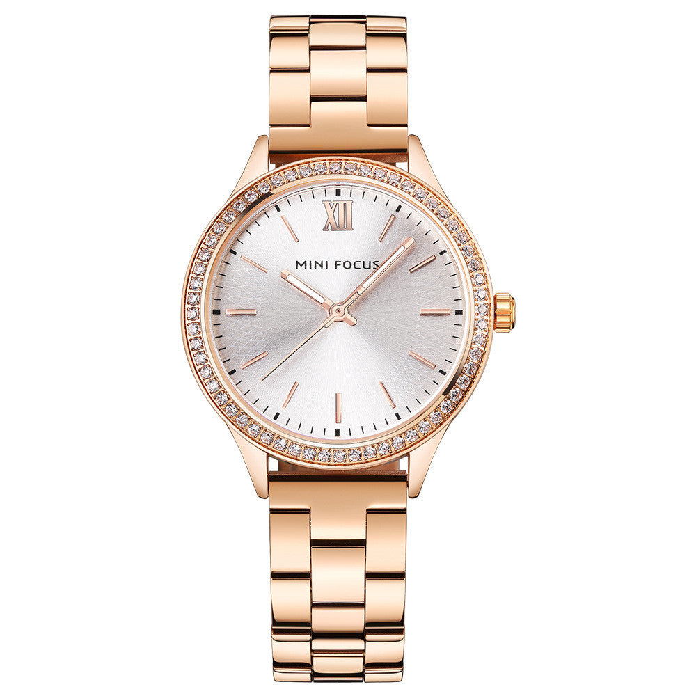 Color: 01 white diamond gold steel band, 02 white diamond white steel band, 03 white diamond rose steel band, 04 black diamond black steel band