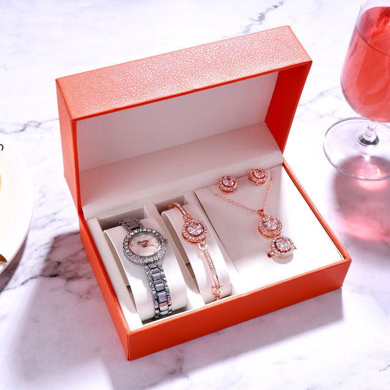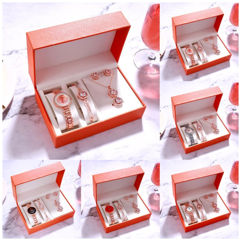 Color: 5-piece set of rose gold and white face (round diamond alloy jewelry), 5-piece set of silver (round diamond alloy jewelry), 5-piece set of rose gold (round diamond alloy jewelry), 5-piece set of rose gold and black face (round diamond alloy jewelry) ), 5 pieces set of rose gold red face (round diamond alloy jewelry
