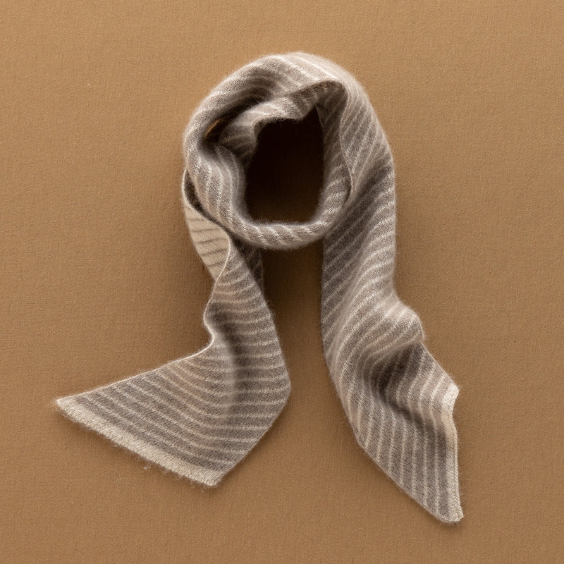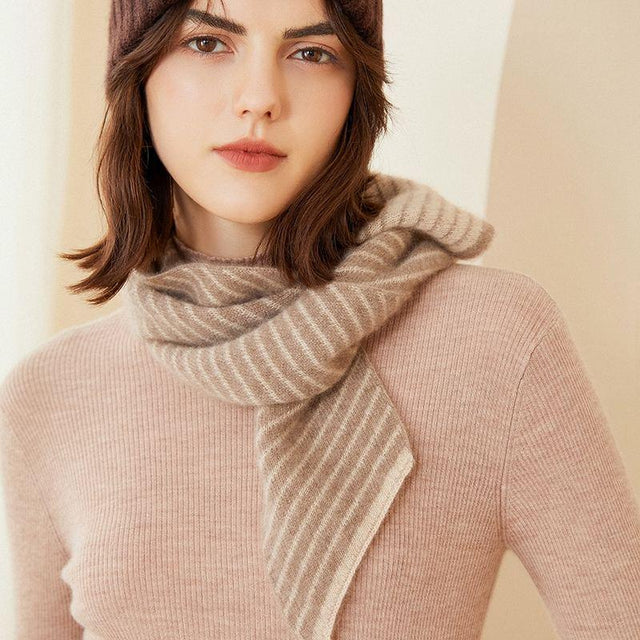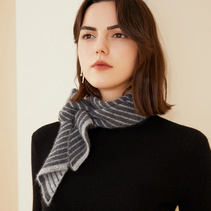 The secret to this scarf's appeal lies in its high-quality goat cashmere. Known for its softness and warmth, cashmere is a luxury material that feels incredible against your skin. The stylish striped pattern brings a modern flair, ensuring you not only stay warm but also look great while doing so. This scarf is more than just an accessory; it's a statement piece that enhances your overall style.