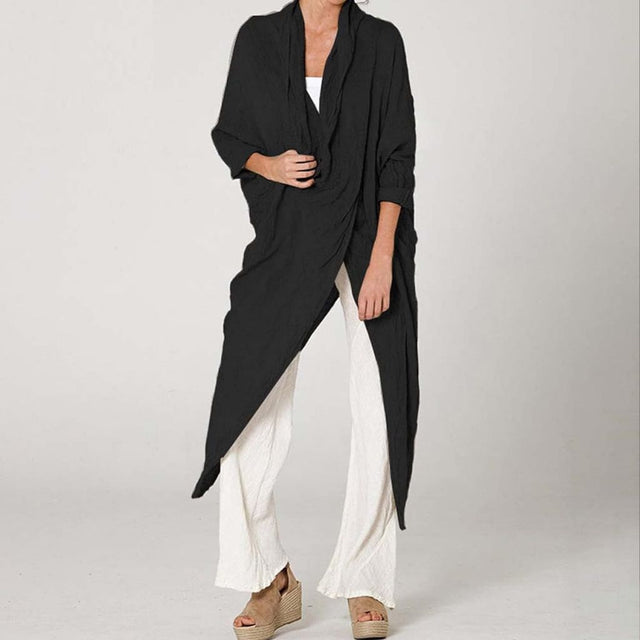 Introducing our Autumn Women Tops, a perfect blend of vintage charm and modern elegance. This Solid Blouse features a cowl neck, long sleeves, and an asymmetrical hem, creating a unique and stylish look that's perfect for any occasion.