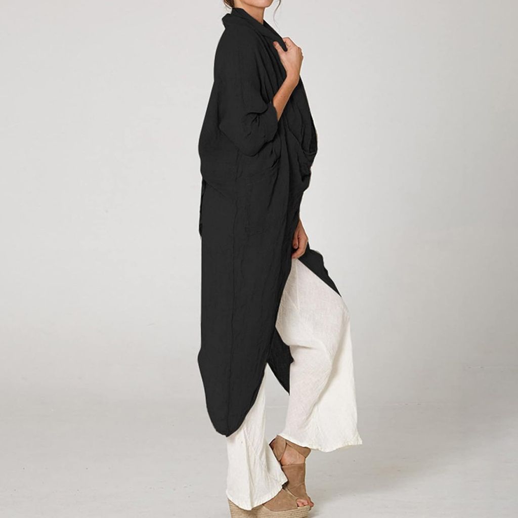 This stylish long shirt is a versatile addition to your wardrobe. Its non-stretch fabric ensures a slim fit, making it ideal for casual outings, holidays, beach days, or parties. The solid pattern exudes timeless elegance, while the cowl neck adds a modern twist.