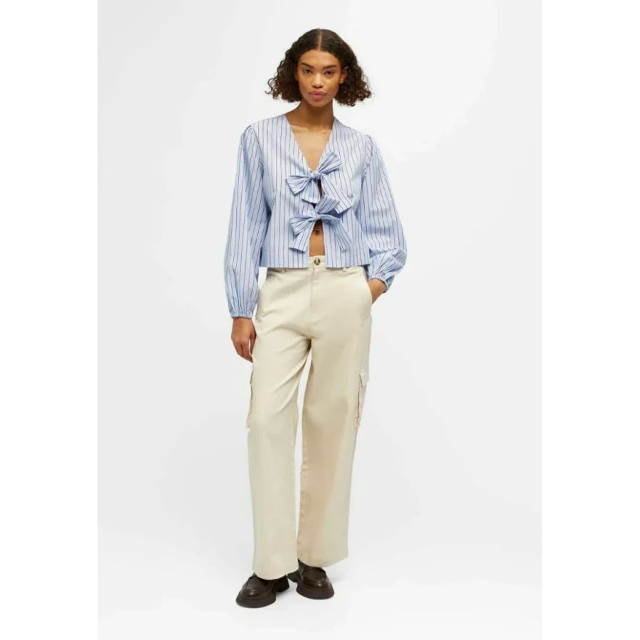 Benefits of Our Elegant Striped Print Lace-Up V-neck Blouse