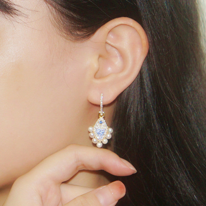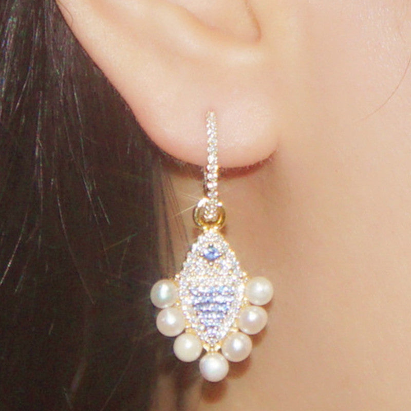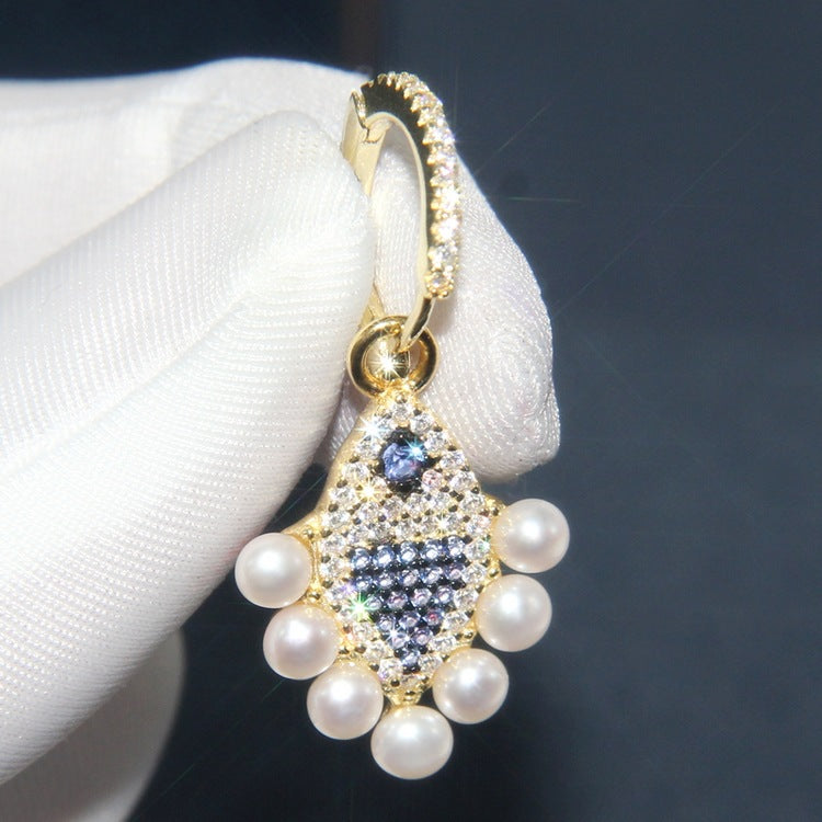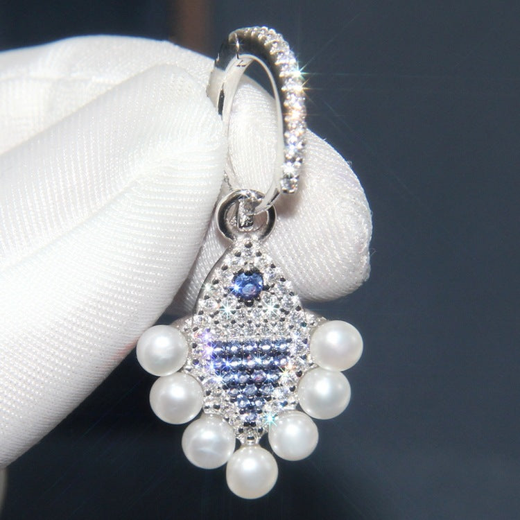 Crystal Diamond Pearl Fish Sterling Silver Earrings