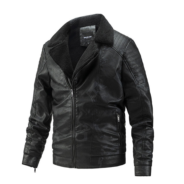 Fall Winter Lapel Men's Plus Velvet Motorcycle Leather Jacket